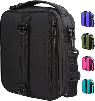 Insulated Lunch Bag For Kids Women Men-Black Lunchbox For Adults With Strap Small Insulated Lunch Box For Work School Rectangle lunch Boxes Expandable-Black